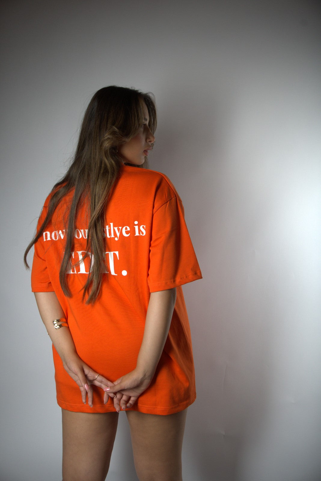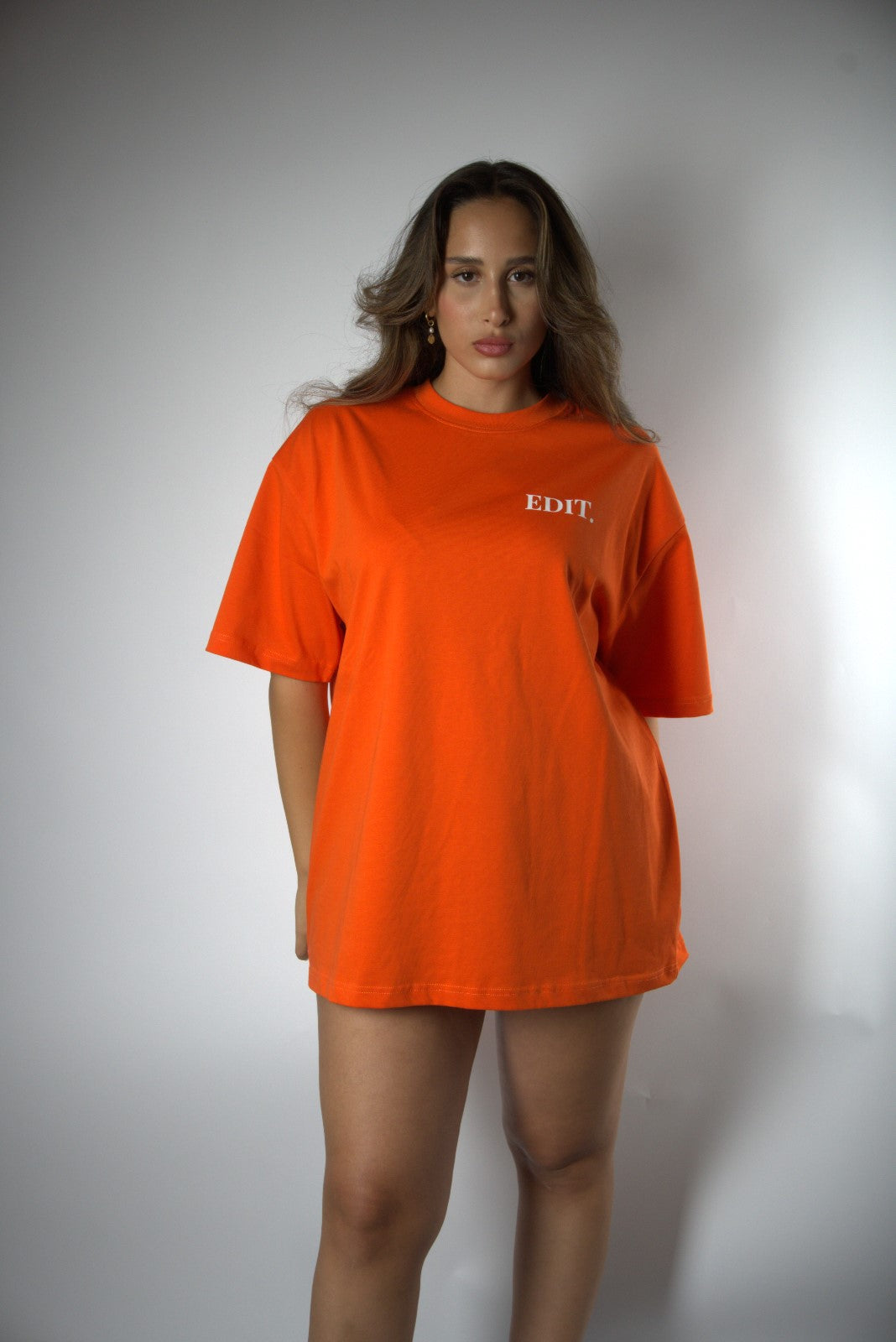 חולצת אובר סייז כתומה מבית אדיט, עשויה כותנה רכה ונעימה, גזרה נוחה ובטוחה