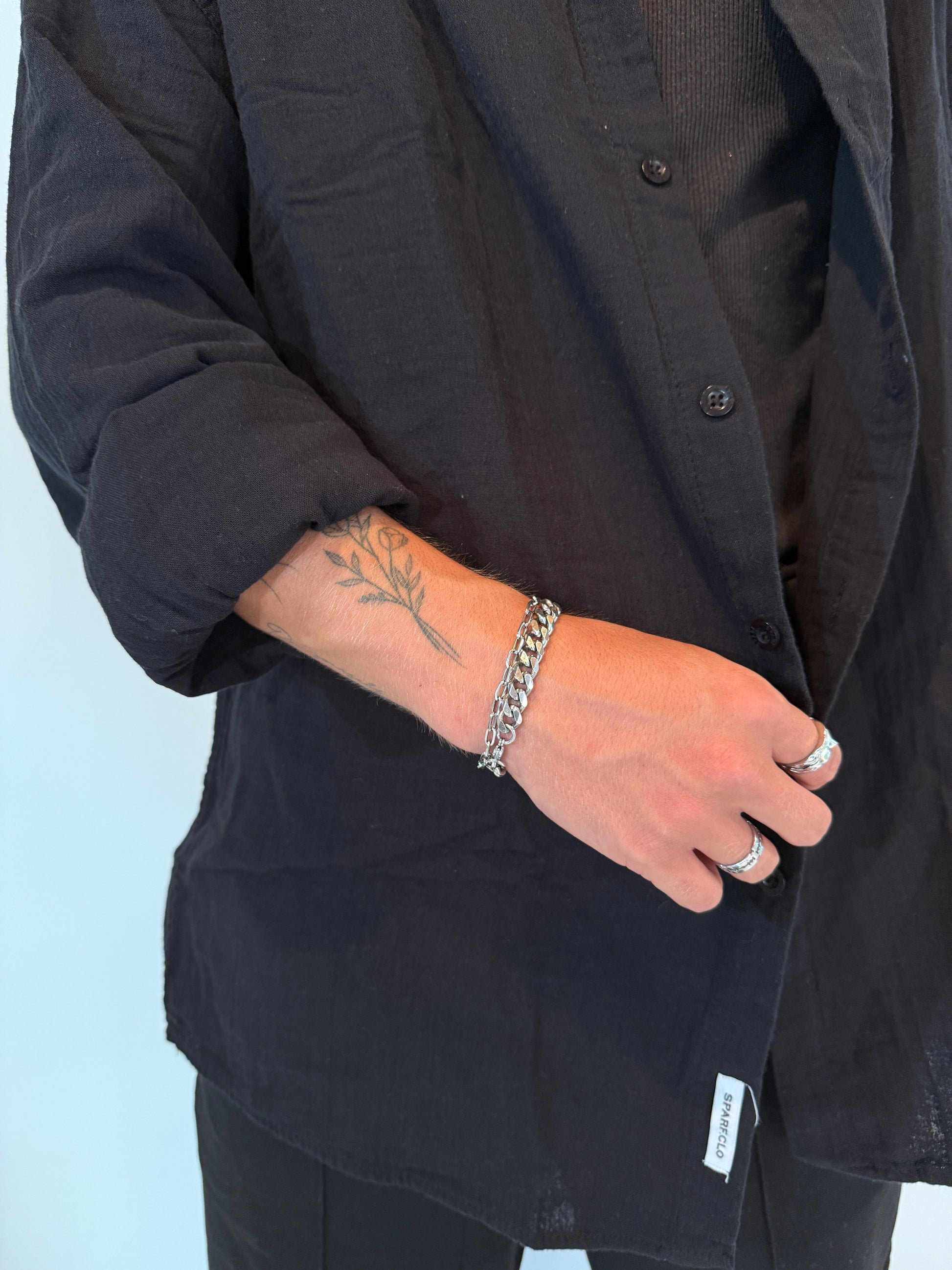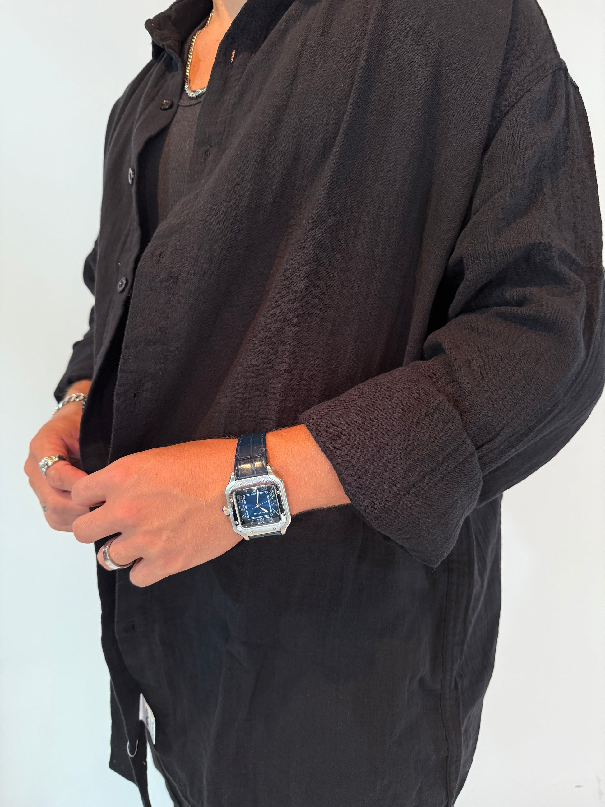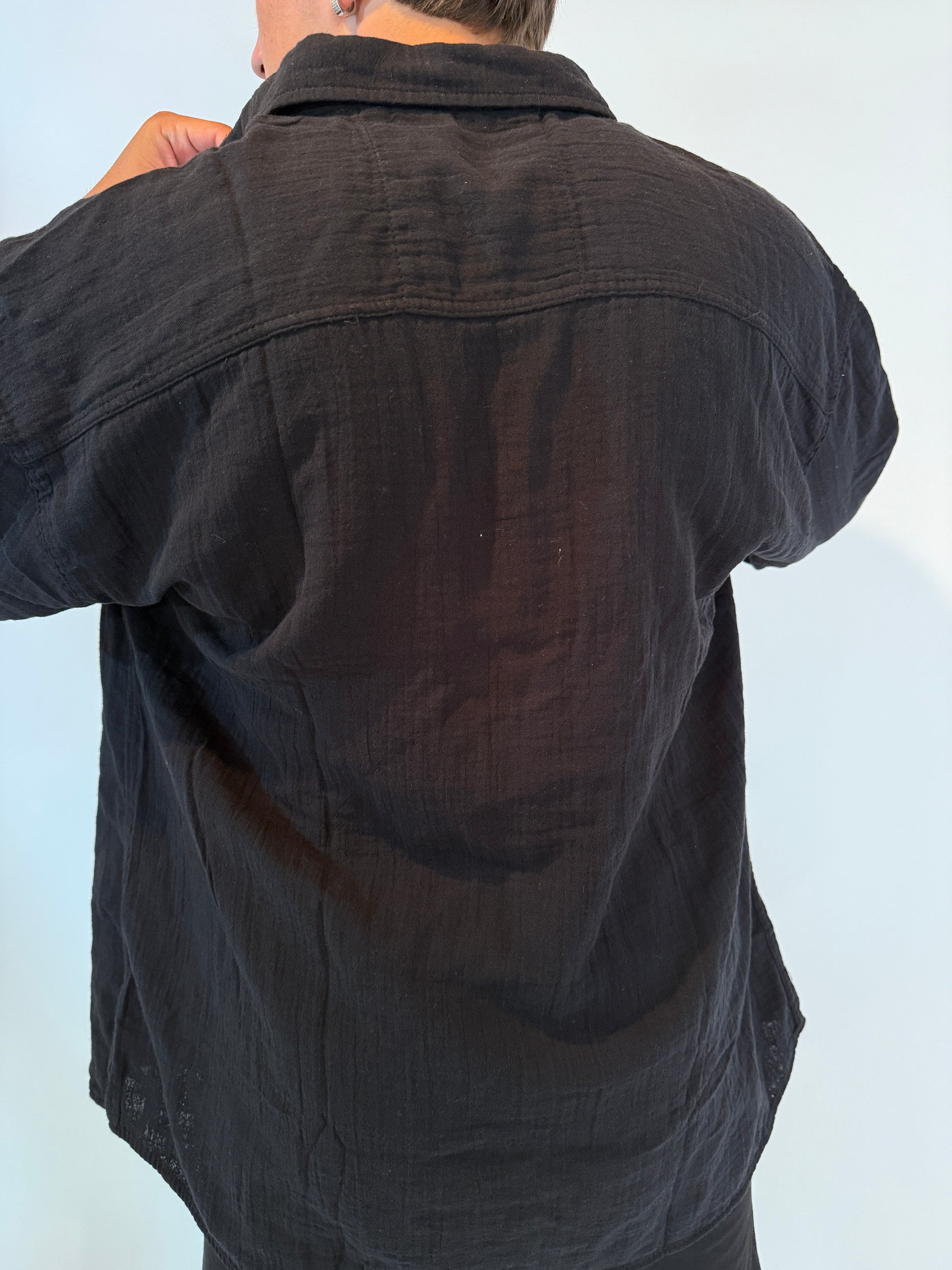 מכופתרת ארוכה מבד פשתן ולא רגיל